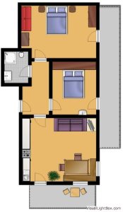 Appartamento per 2-4 persone, 2 camere da letto, 55m2 + 12,9m2 balcone